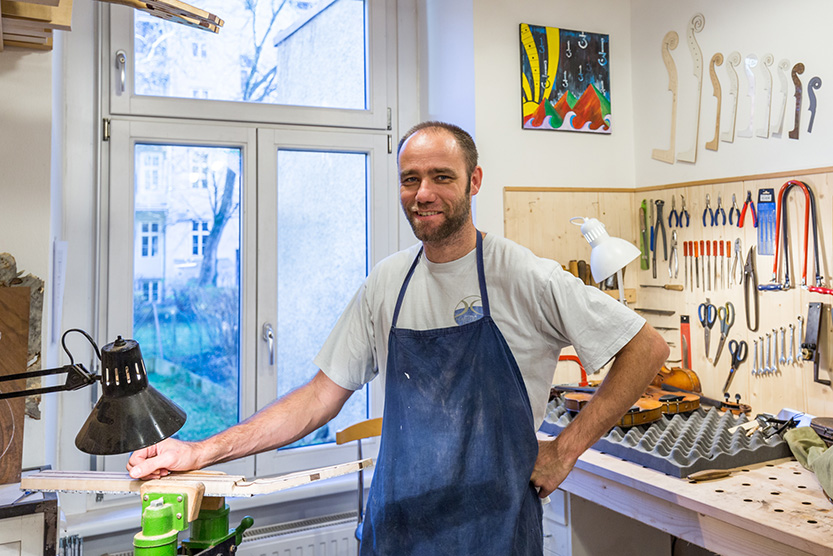 In der Meister-Werkstatt werden Designvorstellungen zum Klingen gebracht. Individuelle Streich- und Zupfinstrumente werden auf Kundenwunsch gefertigt, jedes ist ein Unikat.