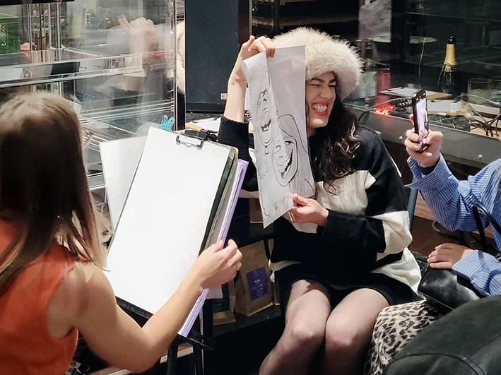 Lera ist seit 12 Jahren professionelle Karikaturistin. Sie zeichnet regelmäßig auf Festivals und Events in unterschiedlichen Ländern. In wenigen Minuten zaubert sie mit leichter Hand und einem Lächeln Karikaturen, die immer spannend zu beobachten sind. Immer witzig, treffend und nett.